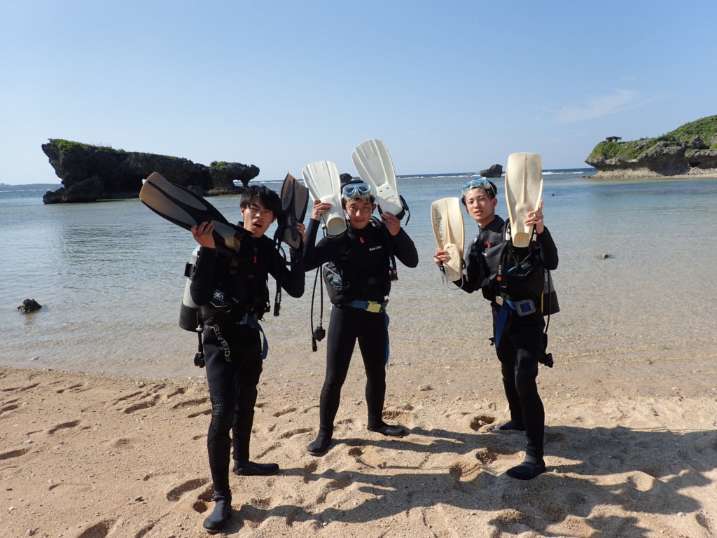 体験ダイビングに来る前に無人島でサバイバルしてきたみたいで笑